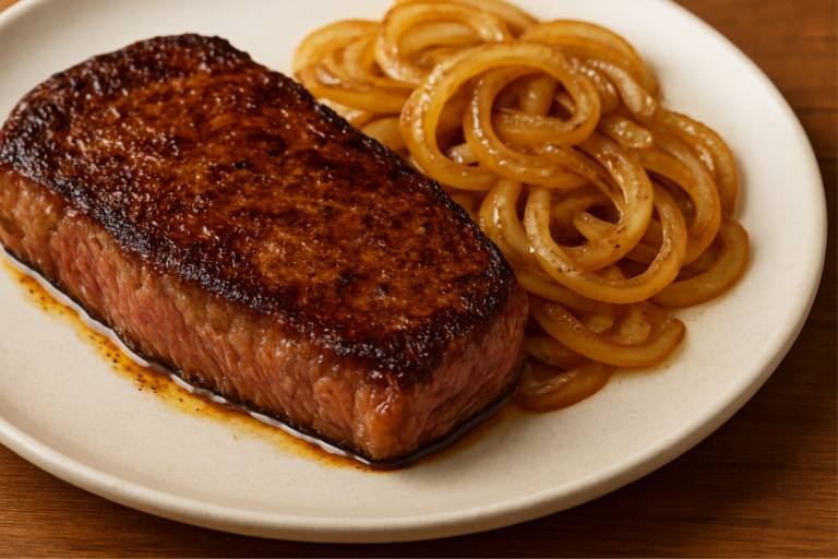 👨 Quando bate a fome e o tempo é escasso, uma ótima pedida é o bife acebolado. Este prato simples e saboroso evoca lembranças da